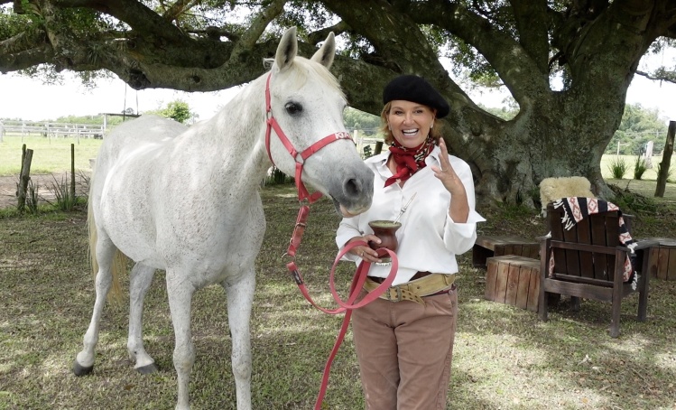 法比安內•普拉特斯是南裏奧格朗德州知名的馬術教練。她在當地多項馬術比賽中獲獎,目前在距離阿雷格裏港40多公里的一所馬術學校擔任資深教練。採訪當天,她身著高喬傳統服飾皮爾查,騎著名叫“基婭拉”的馬在草場上馳騁,這匹馬已經陪伴她27年。普拉特斯説,她的家族與馬結緣已跨越五代。她從小在農場長大,在“馬背上的童年”中培養起深厚感情。