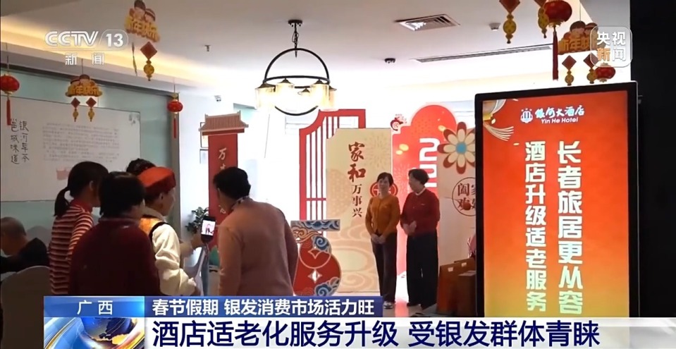 南寧市銀河大酒店副總經理 黃妃珍:65歲以上的老人群體,入住佔比達到了22%。我們希望通過適老服務的升級,兌現一份對長者群體的關愛和承諾。