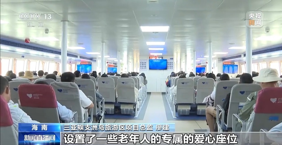 三亞蜈支洲島旅遊區項目總監 廖建:不同年齡段老年人,我們會有不同年齡段的優惠政策。我們的船上設置了一些老年人的專屬的愛心座位,然後我們也設置了很多老年人的候船區域。
