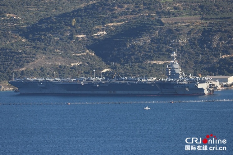 美國海軍“福特”號航母抵達希臘克裏特島蘇達灣。(圖片來源:視覺中國)