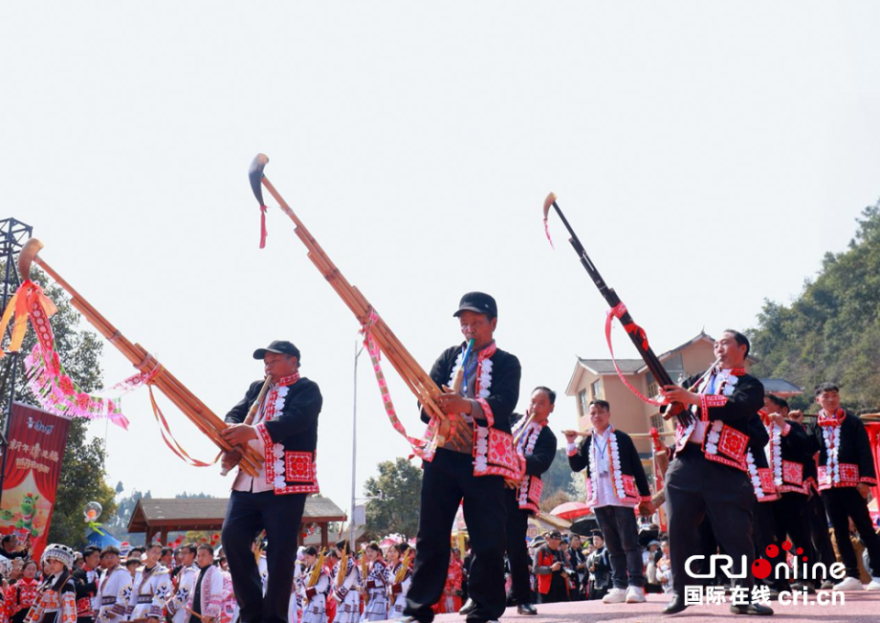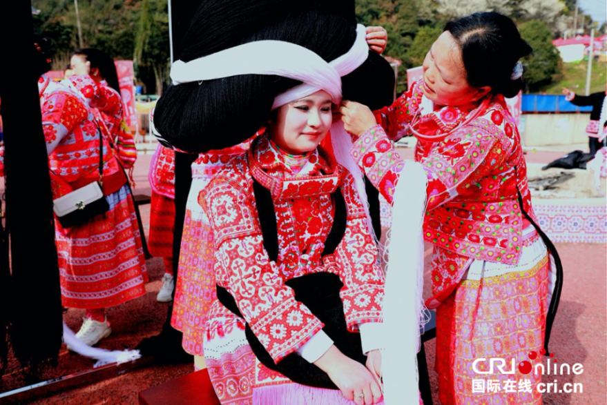 On February 26, the Miao Tiaohua (Flower Jumping) Festival was celebrated in Suoga Township, Liuzhi Special District, Liupanshui City, Guizhou Province. Miao people, dressed in elaborate traditional costumes, gathered joyfully to participate in this traditional folk event.