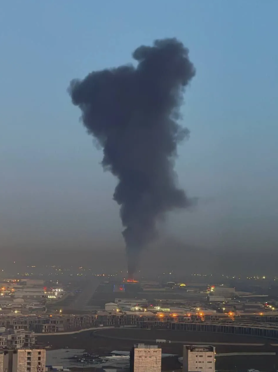 △伊方披露圖片顯示以軍總參謀部總部大樓遭襲並燃起大火