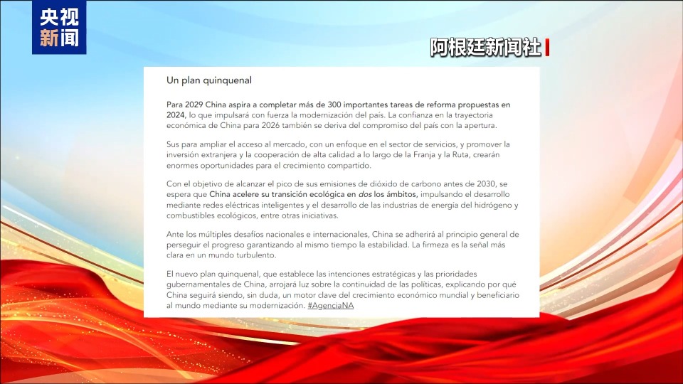 圍繞中國政府工作報告和“十五五”規劃,阿根廷新聞社報道稱,中國將通過更有力的政策支持和改革舉措,繼續推動高品質發展、穩定增長和社會進步。