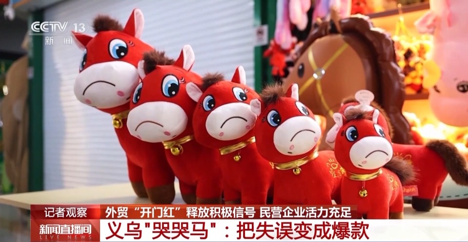 第二個是民營企業應對外貿形勢的高度市場敏感性和靈活應變能力。浙江義烏的“哭哭馬”原本是縫反了嘴角的瑕疵品,被網友發現後意外走紅。商家立刻放棄返工、全線轉産“哭哭馬”,把“失誤”變成“爆款”。在國內爆火之後,南非、中東、歐美等海外訂單接踵而至。