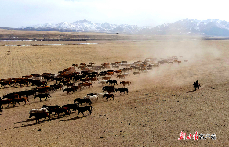 3月5日,是農曆二十四節氣的驚蟄。祁連山下山丹馬場的數百匹馬在祁連雪峰下悠閒覓食。蔚藍的天空、巍峨的雪山、悠閒的馬群、遼闊的草原構成春日草原上的一道美麗風景,盡顯高原春光之美。