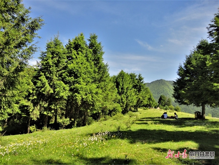 大山中翠綠的青草織成一張厚厚的地毯,其間還有意無意地繡出許多白色、黃色和紫色的碎花,鋪展開來,裝扮了整個樺樹坪,招蜂引蝶,推陳出新,指引著遊客向更高的樺樹林景區和拉尕山主峰景區邁進。