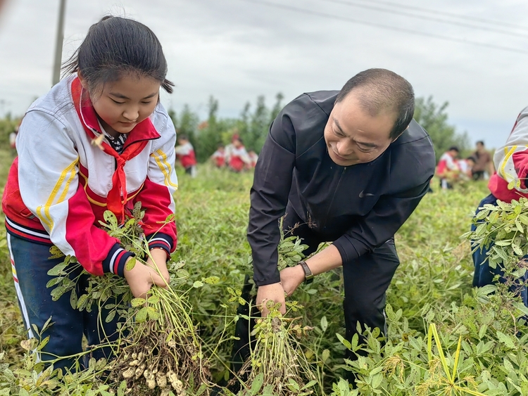 在位於固鎮縣農糧驛站北側的耕田裏一派熱火朝天的農忙景象,來自固鎮縣實驗小學立新路校區的五年級師生親手採摘花生,感受豐收的喜悅。固鎮縣實驗小學校長喬現坤説:“學校開展此次活動,讓同學們不止收穫到滿載的果實,讓他們在泥土散發的清香中感受勞動精神的傳承。”