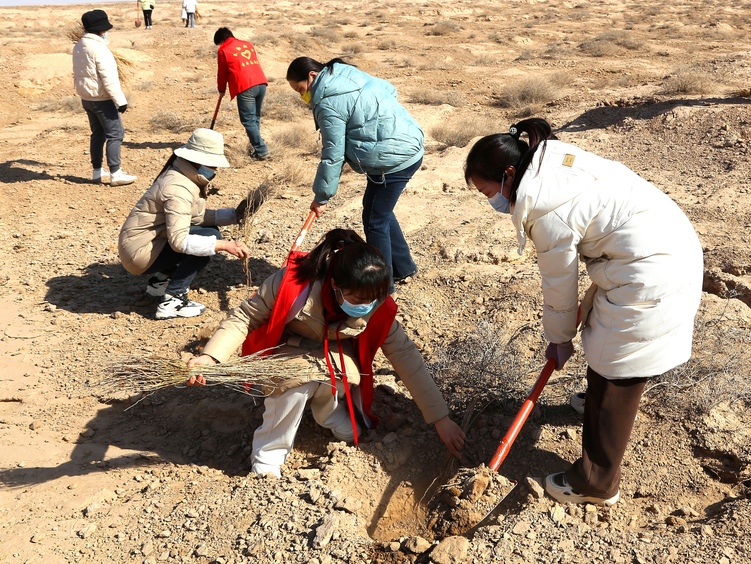 “‘十年樹木,百年樹人’,我們每年都會組織教職工參加義務治沙造林活動,積極投身生態建設和國土綠化,爭做義務植樹的‘綠色傳播者’和‘模範踐行者’,以此吸引更多社會人士關愛自然、重視生態。”民勤職業中等專業學校團工委主任謝榮説,作為教師,不僅要傳授知識,更要以身作則,引導學生樹立正確的價值觀和環保意識。