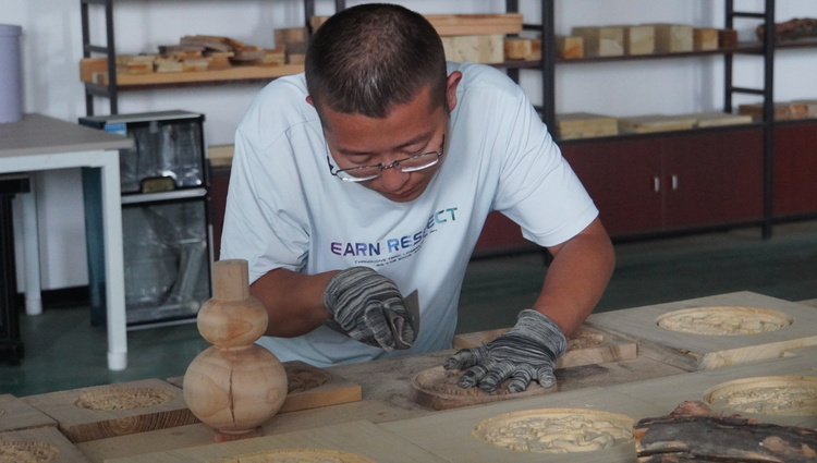 2022年建立桃雕産品展銷及加工中心以來,王志偉就專門負責桃雕工藝品製作。“我們是在果農處收購枝幹,然後進行烘乾防腐處理,再根據客戶需求進行圖紙設計製作,還要對製作品進行打磨、拋光、上色等十余道工序,才能將桃木轉化為現在看見的工藝品。”王志偉説,下一步要做的是爭取特色化、電商化,擴大劉坪鎮桃木工藝品知名度。