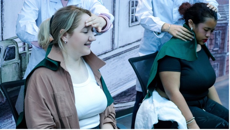 中醫推拿體驗環節,網紅博主們熱情高漲,紛紛記錄下這一珍貴瞬間。馬達加斯加博主全程閉目享受,結束後,她舒展身體,驚喜地表示:“Chinese Magic!原本僵硬的肩膀現在完全放鬆下來了!”來自印度尼西亞的博主則反復回味,“老師們的手法看似簡單,效果卻很好,我現在感覺全身輕盈。”