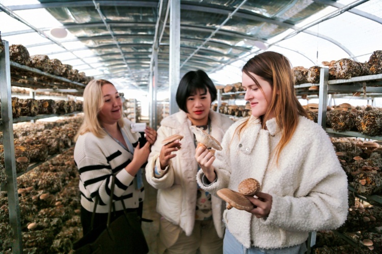 “這些蘑菇好大呀,像傘一樣!”來自馬達加斯加的外國網紅博主陳娜晗指著蘑菇感嘆,臉上洋溢著驚喜。在甘肅天祝縣國家農村産業融合發展示範園高原食用菌基地的大棚內,來自國外的網紅博主們化身“採菌人”,親身感受著“雪域高原第一鮮”的獨特魅力。他們穿梭在整齊排列的菌架間,認真觀察著菌棒上冒出的嫩菇,用鏡頭記錄下這高原生態農業的生動場景。