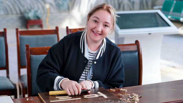 在刻字體驗環節,傳承人從最基礎的握刀姿勢教起,手把手演示如何控制刀鋒力度,講解“起刀要穩、行刀要勻、收刀要準”的技法要領,還結合簡單圖案,示範如何將線條轉化為生動的木質刻痕。“這個真的需要很多耐心,我需要慢慢地推動刻刀,才能在木板上刻出漢字的筆畫。”來自俄羅斯的外國網紅博主神情專注,一邊刻字一邊説道。儘管手法略顯生疏,但大家都沉浸在“以刀代筆”的創作樂趣中,感受著傳統技藝的獨特魅力。