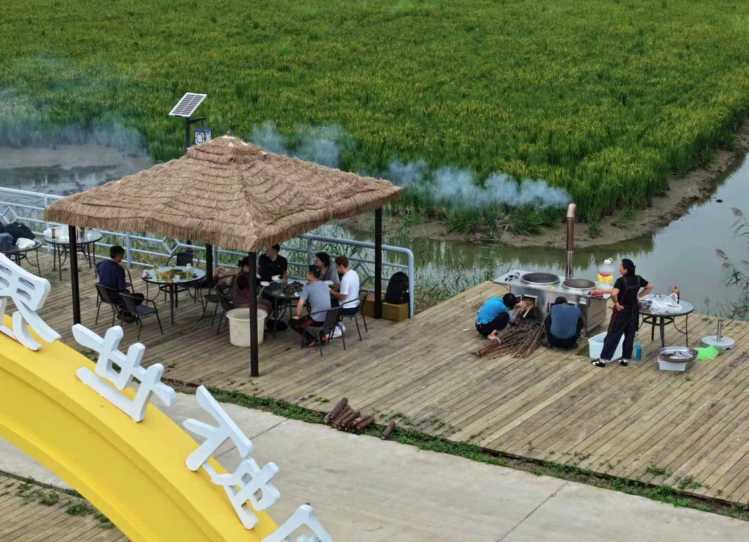 大崗村黨總支部書記郭梅介紹:“大崗村依託稻漁綜合種養,推動鄉村旅遊,構建了融合農家餐飲、特色民宿及農業體驗的綜合旅遊區,致力於綠色産業的蓬勃發展。”