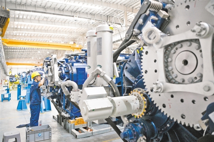 近日,在包頭市明陽新能源裝備製造産業園,工作人員正在組裝風力發電機。該産業園是明陽集團打造的首個“燈塔工廠”,通過柔性脈動生産線,整機裝配耗時從3天縮短至4個小時,具備年産1500台套風電整機的能力。包頭市依託明陽集團等“鏈主企業”的磁極效應,構建風電裝備全産業鏈格局。(記者 孟和朝魯 攝)