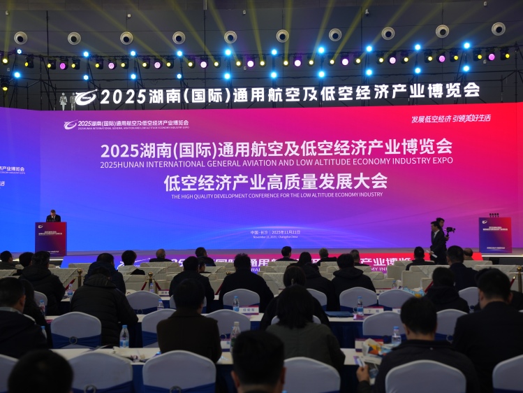11月21日上午,2025湖南(國際)通用航空及低空經濟産業博覽會在長沙國際會展中心開幕。