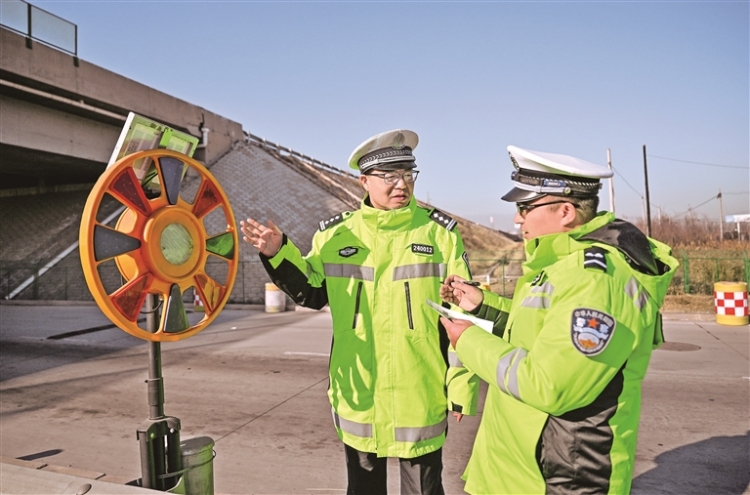 1月14日,石嘴山市公安局交通管理局民警檢查京藏高速公路石嘴山路段上的爆閃燈。近日,石嘴山市開展高速公路、橋梁隧道等基礎設施風險隱患排查,通過加密高速公路視頻巡查和地面巡邏頻次,打擊酒駕醉駕和“三超一疲勞”等行為,確保群眾出行安全。
