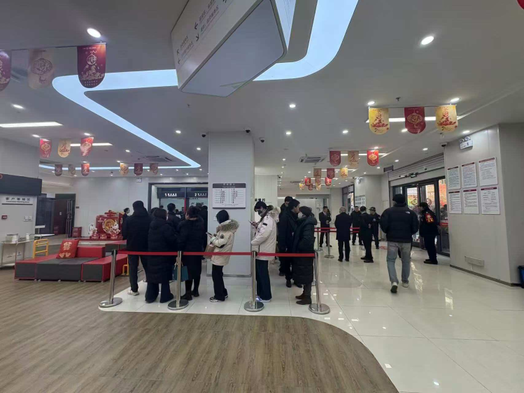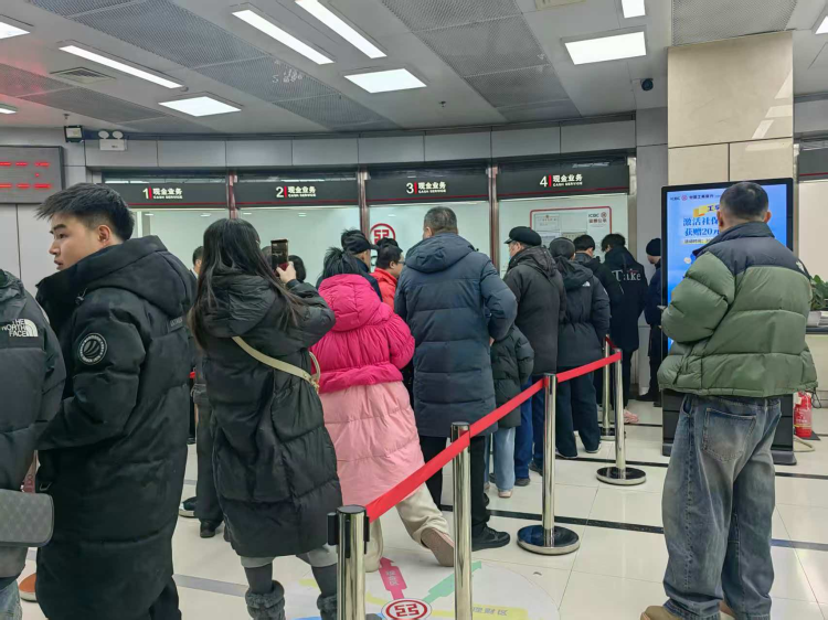客戶在兌換窗口有序排隊等候兌換