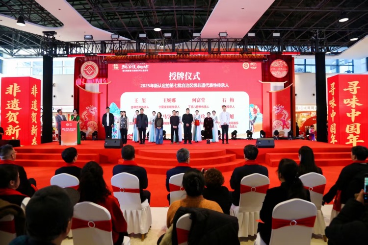 活動現場為2025年新認定的第六批國家級和第七批自治區級非物質文化遺産代表性傳承人代表頒授獎牌,致敬他們堅守匠心、薪火相傳的寶貴精神。隨後,精彩的非遺節目串燒《塞上非遺鬧新春》驚艷亮相,寧夏小曲、秦腔、傳統武術與現代機器人同臺、傳統雜技等輪番上演,展現了寧夏非遺的獨特魅力與時代活力。