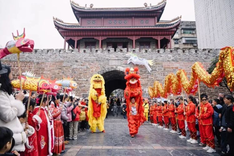 市區資江南路,龍獅獻瑞賀新春。