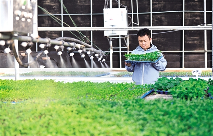 2月24日,在內蒙古蒙苗農業科技有限公司育苗大棚內,工作人員查看蔬菜種苗長勢。該公司育苗基地通過工廠化育苗,選育適合當地氣候和土壤生長的最優質品種,培育番茄、辣椒、芹菜等多個品種優質種苗,銷往周邊盟市以及河北、河南、寧夏、北京等省區市。截至目前,內蒙古通過強化育苗能力建設,已累計建成15個5000萬株以上集約化育苗中心。(記者 孟和朝魯 攝)