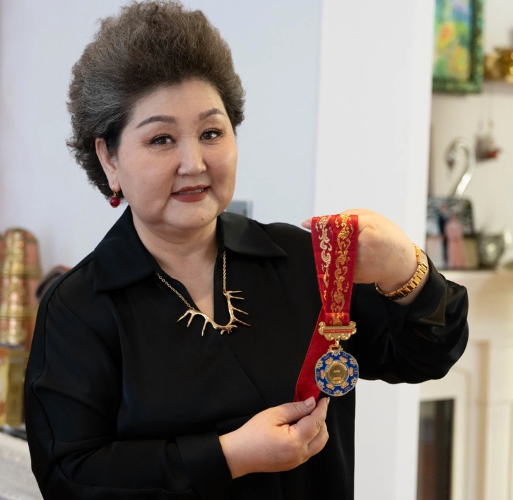 烏日娜獲得文化部頒發的“非遺獎章”(圖片拍攝:胡民)