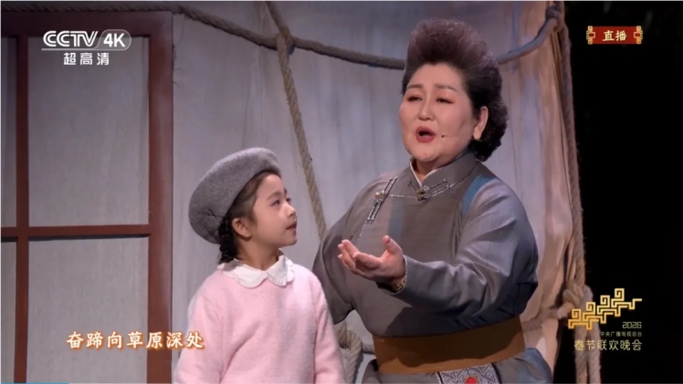 除夕之夜,萬家團圓。2026年2月16日,中央廣播電視總臺春節聯歡晚會的舞臺上,一曲《奔騰的海騮馬》如草原長風般席捲而來,瞬間攫住了億萬觀眾的心。著名歌唱家烏日娜、青年演員阿如那,與95名烏蘭牧騎隊員一道,用渾厚的長調、鏗鏘的舞步與極具張力的舞臺呈現,將內蒙古草原的遼闊、豪邁與深情,毫無保留地獻給了全國觀眾。節目播出後,反響如潮,許多人表示:“即使聽不懂蒙語歌詞,也被那份純粹的情感與力量深深打動,在電視機前濕了眼眶。”