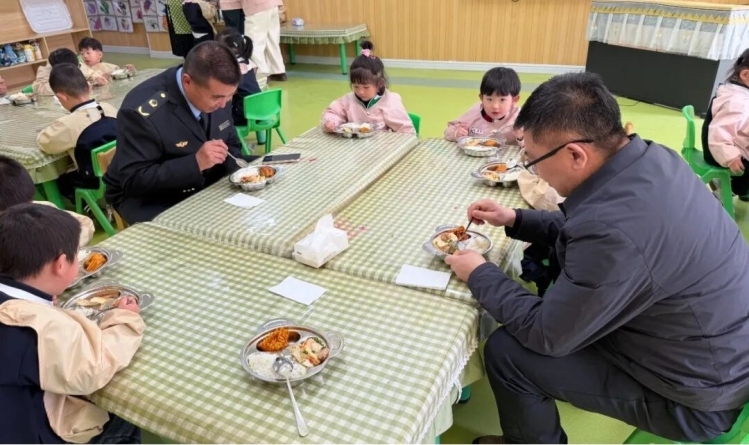 在岷縣東城幼兒園,市場監管人員、學校負責人及學生家長代表一同在食堂陪餐。陪餐過程中,相關人員全程細緻查看菜品品質、詢問飯菜口味,認真收集師生及家長的意見建議,全方位了解食堂供餐情況。“東城幼兒園一直堅持家長陪餐和園領導陪餐制度,有了這樣的監督,我們對孩子在園的飲食安全特別放心。”陪餐後,學生家長説道。