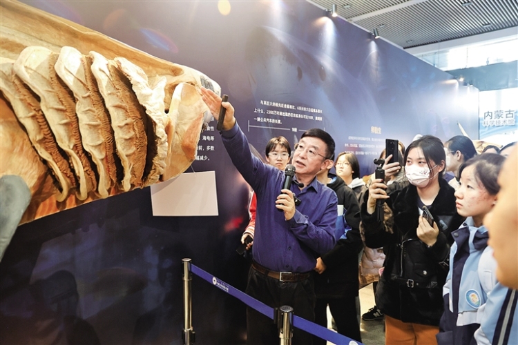 2月27日,大連醫科大學解剖學教授、“生命奧秘博物館”創始人隋鴻錦為中小學生進行現場科普講解,深入探索海洋生物的奧秘。當日,內蒙古科技館舉辦《開學第一課:聽科學家講述生命背後的故事》活動,將專業的科學知識與趣味的展示形式相結合,既豐富了青少年的寒假生活與開學體驗,也為提升青少年科學素養、培養科學探索精神搭建了優質平臺。(記者 賈奕村 攝)
