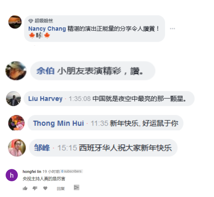 眾多海外華人網友留言表達對總臺2020網絡春晚的喜愛。