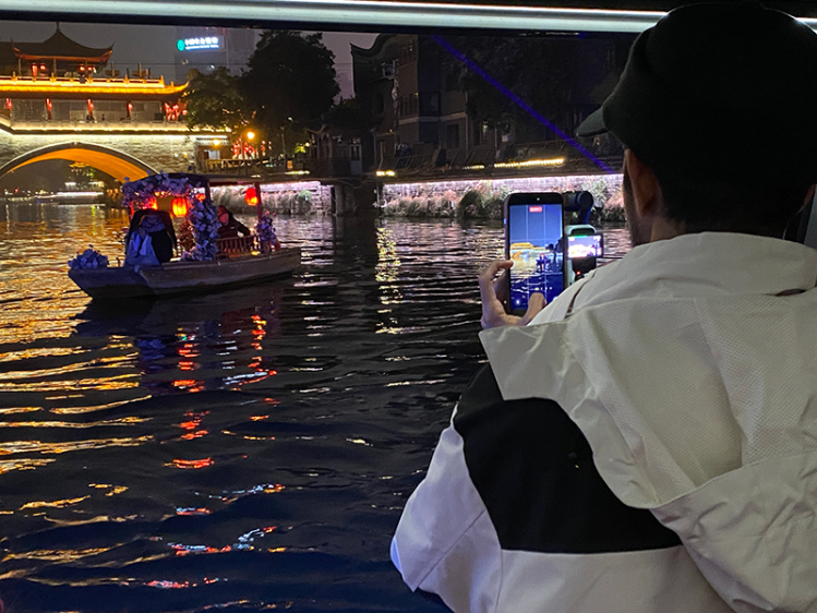 As the boat approached Anshun Bridge, the soft sound of a flute wafted up from the bridge, resonating with the dazzling lights along both banks. Juliette from France said: “This place is steeped in history and romance.”