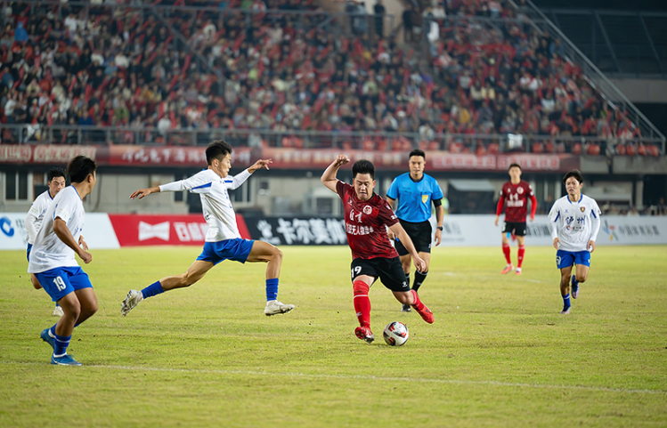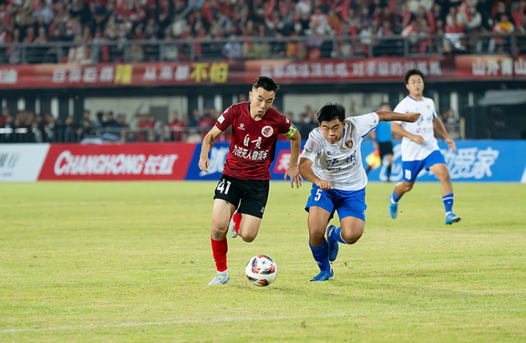 比賽伊始,背水一戰的瀘州隊便發起猛烈攻勢,自貢隊則依託主場攻防體系穩紮穩打。上半場,兩隊相持不下,以0:0進入中場休息,下半場戰局突變,第58分鐘,自貢隊抓住定位球機會,19號何思漢“回頭望月”將球蹭進遠角,打破僵局一舉破門,比分來到1:0;第82分鐘,中後衛楊航抓住機會,在助攻朱濤的幫助下,再進一球,隨後瀘州隊雖加強進攻,但自貢隊防守端延續賽季穩健表現,後衛多次解圍守住勝果,最終比分定格在2:0,自貢隊順利將總決賽入場券收入囊中。