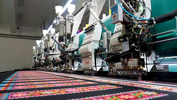 近日,在宜賓市筠連縣高坪苗族鄉的筠連縣蒙咪彩服飾有限公司的數字化生産車間智慧化、自動化的兩條生産流水線上,電腦繡花機高速運轉,針頭以飛快的速度將彩線在布料上勾勒成畫。