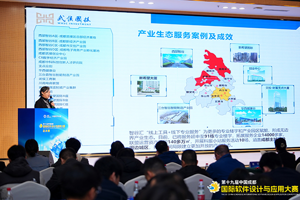 總決賽採用現場路演答辯形式,專家評審團從技術突破性、場景創新性、市場前景等多維度對項目進行綜合評判。為促進成果轉化,大賽深度連結天府軟體園、白鷺灣科技生態園、西部智谷等專業園區,並邀請西部智谷進行産業服務體系推介,武侯國投集團推介新建載體雙鳳軟體園,為優秀項目提供全方位落地賦能。