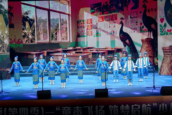 11月28日晚,錦江藝術季(第四季)“童聲飛揚 築夢啟航”少兒音樂匯在成都市婦女兒童中心劇場舉行。活動以“童聲為橋 紅心為魂”為主題,通過“愛在家國”“薪火相傳”“向陽生長”三個篇章,以合唱、舞蹈、民族音樂等形式,為400余名觀眾呈現一場少兒藝術匯演。