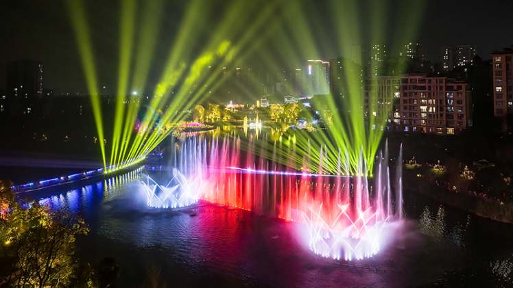當晚,龍湖音樂噴泉水幕開啟首秀。這座融合科技與藝術的城市新地標以“聲、光、水、影”四重奏呈現“一曲一景、一時一韻”的視覺奇觀。據悉,龍湖音樂噴泉的落成,標誌著沿灘新城文旅融合邁入新階段。未來,龍湖音樂噴泉將與“花滿沿灘”城市花街、“沿如遇”圖書館、王家大院古建築等點位聯動,通過多元業態,持續激活城市活力,展現沿灘魅力。