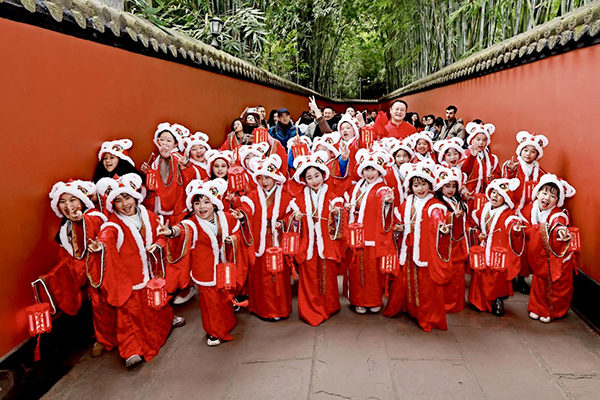 2月3日,在成都武侯祠博物館裏,一群身穿喜慶紅裝的小使者,用清脆響亮的童聲送上馬年祝願:“祝大家春風得意事事順,馬到功成日日新!”這些活潑可愛的孩子,正是今年武侯祠成都大廟會上最受喜愛的“小喜神”。他們帶著滿滿祝福,為成都的新春增添了濃濃的歡樂與祥瑞。