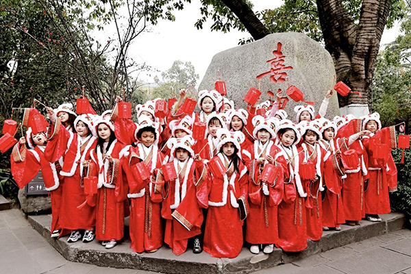 今年武侯祠成都大廟會的“小喜神”多達55名,並分為“福星小喜神”“國際小喜神”“鴻運小喜神”三大類別。作為傳統年味的國際范兒擔當,成都武侯祠博物館專門推出英語、法語、德語、俄語、西班牙語、泰語等多語種招募短視頻,並通過全球30多家國際知名網站面向全球開啟招募。最終,中葡混血的丫米、中法混血的Jason、中國巴基斯坦混血的先愛莎、先愛華姐弟倆以及中葡混血的Tici入選今年的“國際小喜神”。