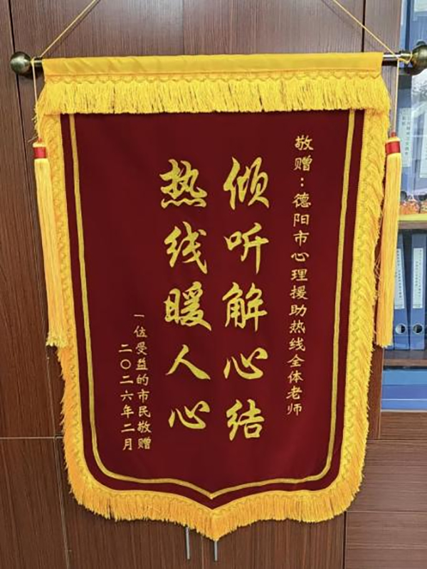 這面錦旗背後,是一個普通市民與一條心理援助熱線之間的暖心故事。近半年來,德陽市民張先生一直陷於家庭關係的困擾之中。一次偶然的機會,他得知了德陽市12356心理援助熱線的存在,抱著試一試的心態撥通了那串數字。