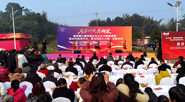 2月6日,宜賓第三屆和美鄉村文化節暨銅鑼鎮“連心共赴現代化,策馬同品九大碗”迎春活動在長寧縣銅鑼鎮便民服務中心廣場舉行。