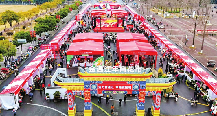 2月8日上午,溫江區年宵花市在光華公園正式開幕。作為全國四大花木産業基地之一,溫江依託傳統優勢産業基礎,集結南美農業、逸美園藝等十余家農業花卉企業,百餘種花卉與川派盆景相映成趣,“綻”成一條繁花似錦的“美麗經濟”風景線。現場的村糖酒肆與年貨集市匯聚超90家各類優質商戶,更有溫江禮物定制禮盒,匯聚本土特色好物。活動還特別推出專屬票根福利,一張票根,串聯起“賞花購花+美食娛樂+文旅體驗”的多元消費場景。
