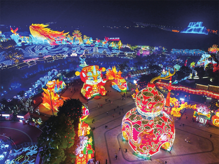 35米高的《華結映門》燈組,交織出全球華人心中共同的“中國結”;長達180米的《木蘭傳奇》燈組,用“綵燈連環畫”把花木蘭的傳奇重新述説;長210米、高32米的《神奇華夏》燈組,將《莊子·逍遙遊》中的“鯤鵬”點亮……1月23日晚,自貢·中華綵燈大世界,伴隨著觀眾一聲聲“快看這個”“太震撼了”“我要和它合影”,第32屆自貢國際恐龍燈會正式開幕。2月7日,第55屆成都國際熊貓燈會也在成都東安湖溪峰島開燈迎客。
