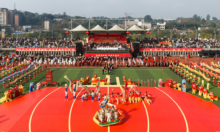 2月11日,“千龍千獅鬧新春 歡歡喜喜過大年”四川省2026春節群眾文化活動啟動儀式暨“非遺年貨購物月”主場活動在自貢市富順縣舉行。來自全省20個市(州)的91支龍獅隊伍、上千名演職人員齊聚富順,與現場上萬名市民遊客共襄文旅盛宴、同賀新春佳節。
