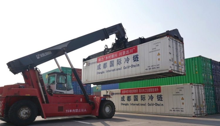 國際冷鏈集裝箱裝卸現場 供圖 成都市青白江區委宣傳部