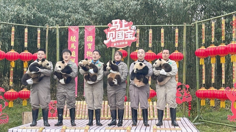 2月11日,一群毛茸茸的大熊貓幼崽“萌”翻熒屏,向全國人民送上憨態可掬、暖意融融的新春祝福。這份讓人難以抗拒的祝福,來自大熊貓國家保護研究中心舉辦的“馬上見國寶”新春主題活動。來自中國大熊貓保護研究中心和成都大熊貓繁育研究基地的30隻2025級新生大熊貓寶寶齊亮相,集中展示了兩大機構2025年的大熊貓繁育成果。