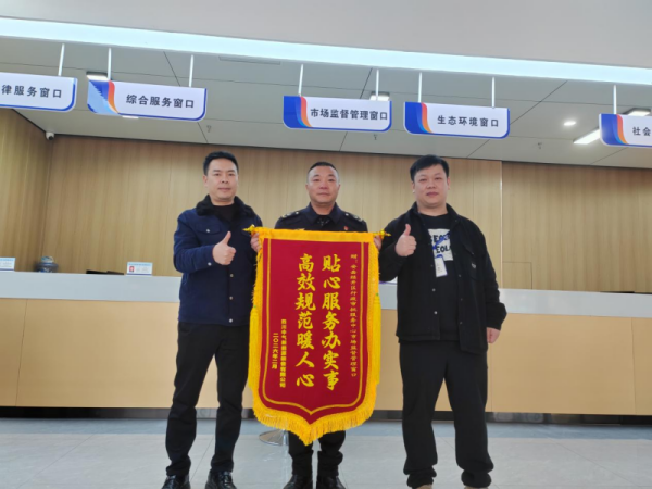 這面錦旗,源自企業總部遷址需求。在辦理地址變更時,企業面臨多重難題。市場監督管理窗口工作人員了解情況後,堅持以高品質服務為導向,踐行“你提我辦”承諾,迅速開闢綠色通道,主動上門提供“一對一”全流程代辦服務,精準破解堵點卡點,讓企業“足不出企”高效完成辦理,切實解了燃眉之急,助力企業全身心投入到發展創業中。
