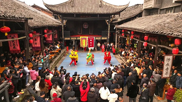 來自成都的遊客謝平説:“早就聽説羅城古鎮春節有非遺表演,我今早5點就從成都驅車趕來。這裡年味特別濃,非遺表演更是精彩絕倫,既喜慶又震撼,能近距離感受傳統文化的魅力,非常有意義。”
