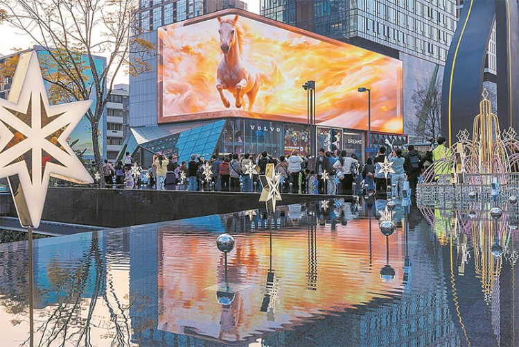 馬年春節太古裏裸眼3D大屏上飛馬賀新春。 成都日報錦觀新聞記者 彭浩 攝