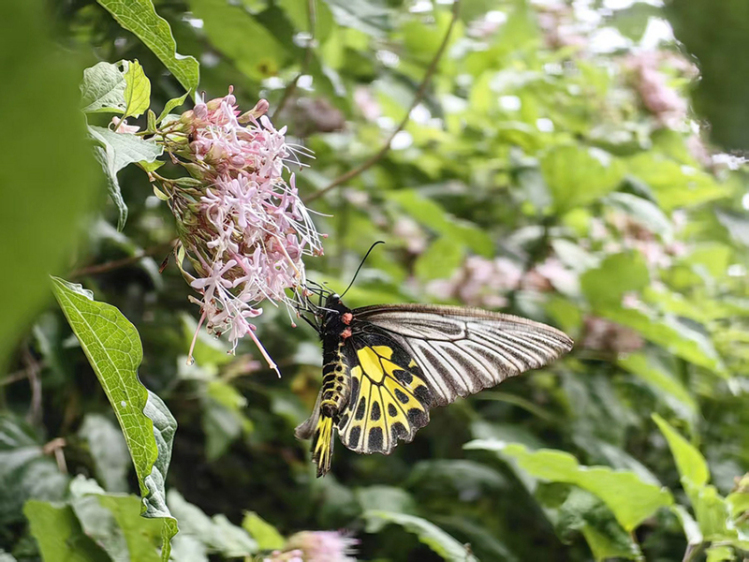 談及這次調查中印象最深刻的蝶類,王磊首先提到了金裳鳳蝶,作為我國體型最大的蝴蝶,它飛翔時姿態舒展優美,後翅的黃色斑紋在陽光下金光燦燦,格外奪目。2019年,王磊帶領團隊在宜賓市屏山縣老君山國家級自然保護區開展昆蟲調查時,曾親眼看見一隻金裳鳳蝶從瀑布的水霧之中翩然飛出,恰似彩蝶破“雲”而上,那個場景令他至今難忘,是生命之美與自然力量的完美交融。