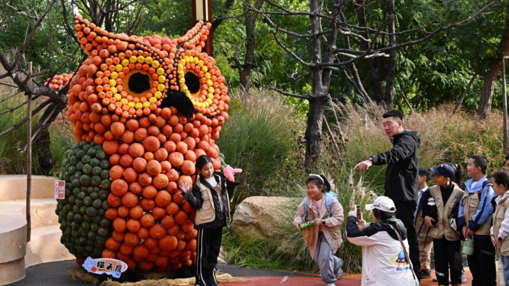 近日,青島東方伊甸園舉行“南瓜藝術王國”主題展,景區內用不同品種和色澤的南瓜搭建的卡通造型憨態可掬,吸引眾多遊客前來賞玩。