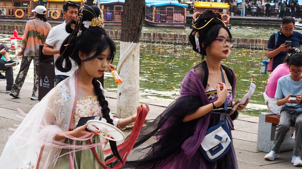 湖畔節日氣氛濃郁,成了外地遊客必到的打卡地。(齊魯晚報·齊魯壹點記者 周青先)